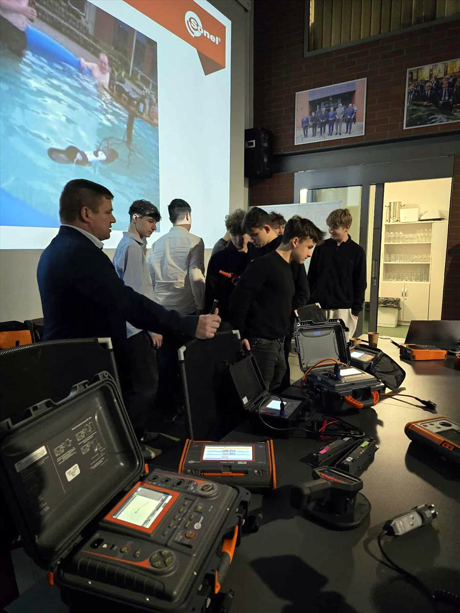 Podczas szkolenia uczniowie poznali najnowsze rozwiązania pomiarowe marki SONEL, uczestniczyli w praktycznych pokazach działania mierników i urządzeń pomiarowych oraz dowiedzieli się, jak prawidłowo wykonywać pomiary ochronne, takie jak pomiar RCD, impedancji pętli zwarcia, rezystancji izolacji i uziemienia. Otrzymali również wskazówki dotyczące badań okresowych i interpretacji wyników pomiarów.